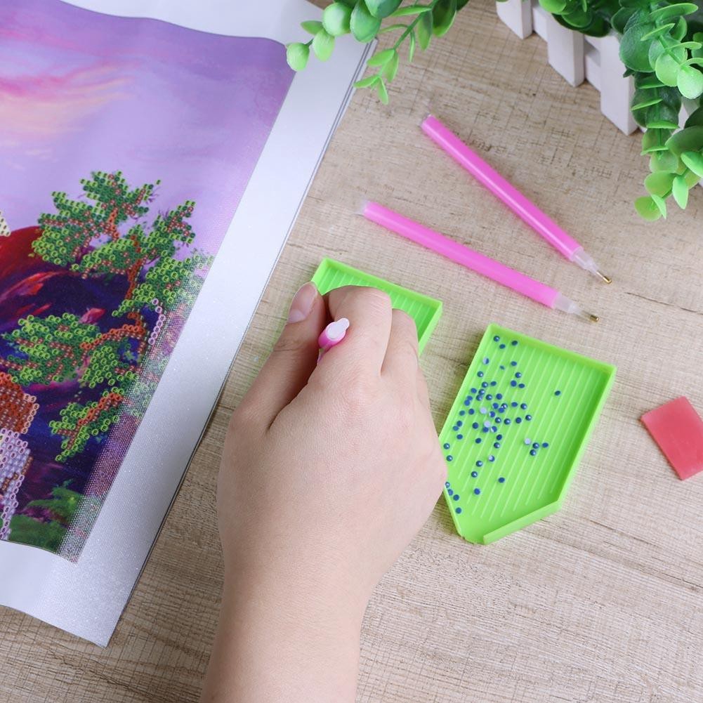 Bộ phụ kiện khay/bút/keo làm tranh thêu chữ thập đính đá thủ công.