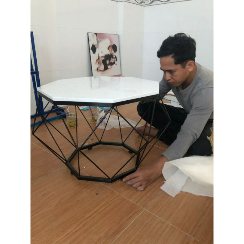 Bàn sofa, bàn trà kim cương [GIÁ XƯỞNG], sơn tĩnh điện, mặt đá dày 14mm