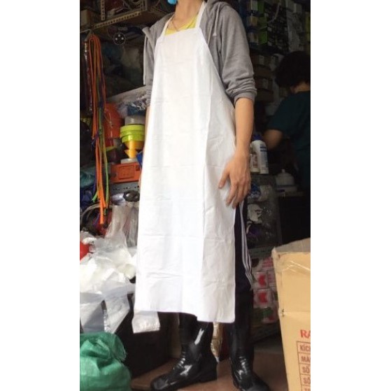 Tạp dề nhựa chống thấm nước màu trắngChất liệu: Nhựa PVC mỏng siêu nhẹ, siêu bền