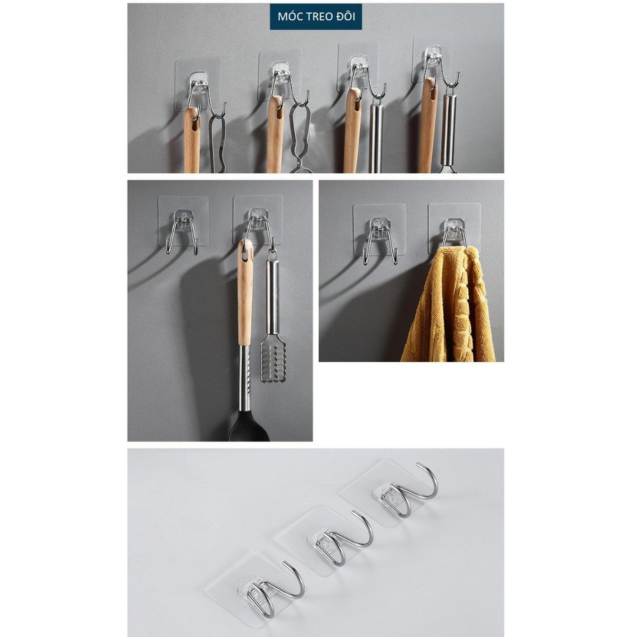 Móc Dán Tường Inox 304 Siêu Dính Treo Đồ Nhà Bếp, Móc Đôi Cường Lực Cao Cấp