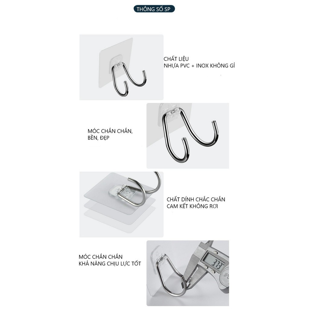 Giới thiệu Móc Dán Tường Inox 304 Siêu Dính Treo Đồ Nhà Bếp, Móc Đôi Cường Lực Cao Cấp