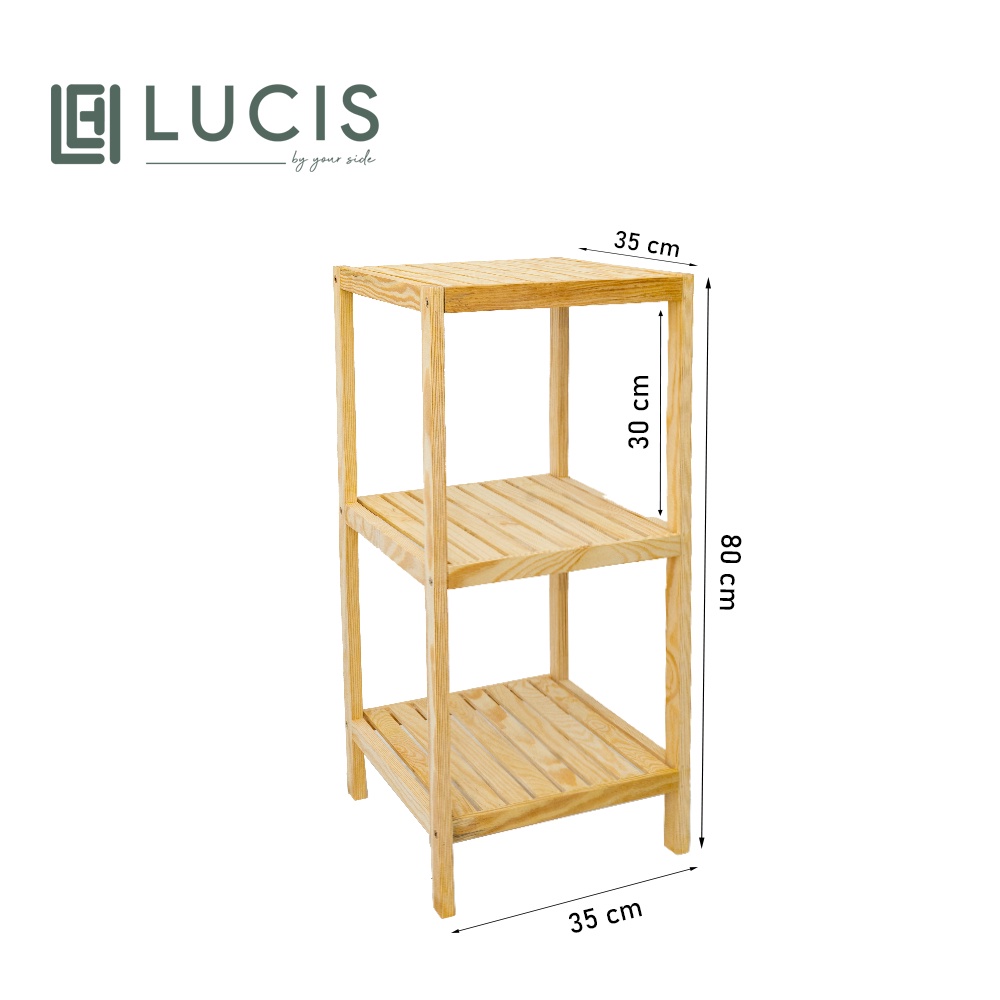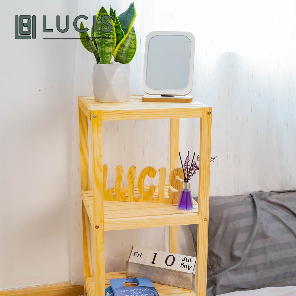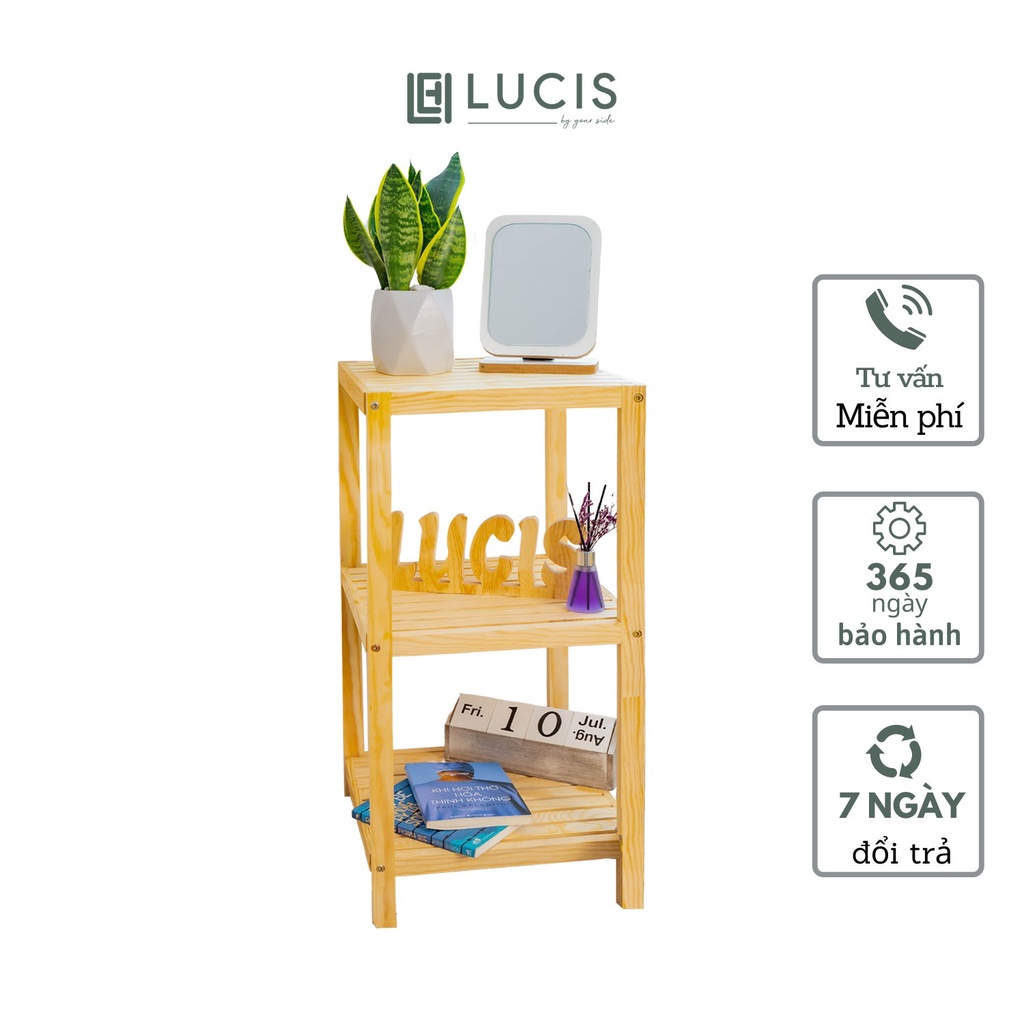 Kệ gỗ để đồ trang trí 3 tầng LUCISKệ gỗ trang trí 3 tầng làm từ chất liệu gỗ thông nhập khẩu đã qua xử lý, có khả năng chống mối mọt và chịu lực tốt. Sản phẩm mang lại sự tối giản, tinh tế trong bài trí phòng ngủ, phòng khách hoặc nơi làm việc