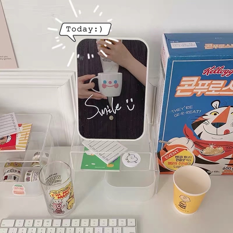 Giới thiệu Gương trang điểm để bàn Béo Shop , gương soi make up chữ nhật bằng nhựa nhiều màu