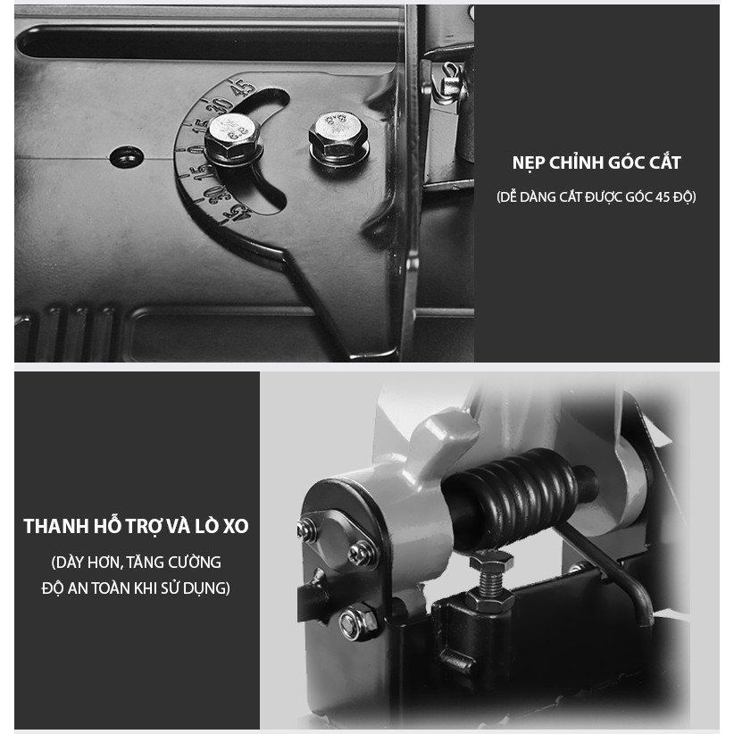 - Có nẹp điều chỉnh góc cắt, cắt được góc 45 độ