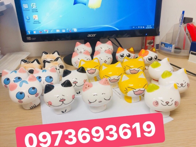 Những chú mèo bằng sứ ngộ nghĩnh trang trí cho góc làm việc thêm phần sinh động, thích hợp trang trí kệ, bàn, oto... làm quà tặng cũng yêu lắm b nha!Mèo cao 4cm...