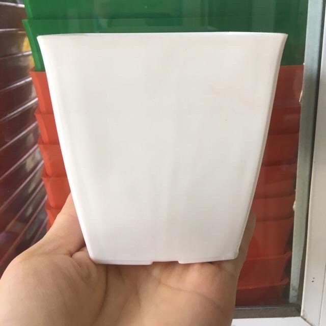 Chậu nhựa dáng vuông loại nhỏ được dùng trồng sen đá, xương rồng, cây để bàn,.....Chất liệu: nhựa PP dày dặn