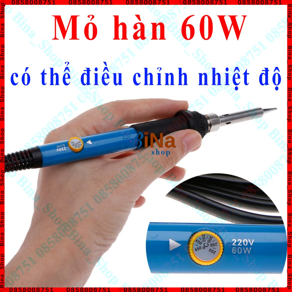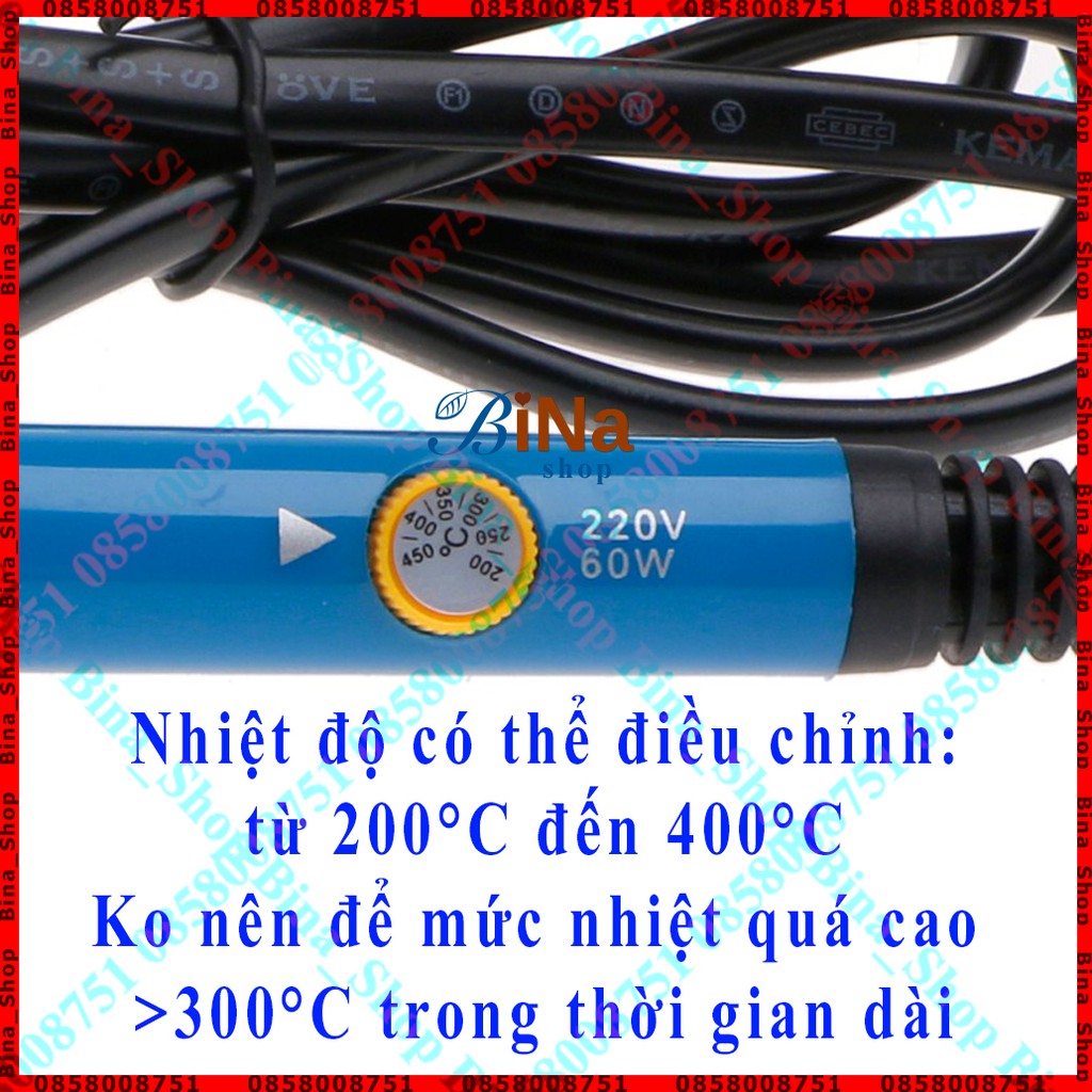 Mỏ hàn 220v 60W có núm điều chỉnh nhiệt độ 200°C-450°CĐiện áp hoạt động : AC 220v-240v