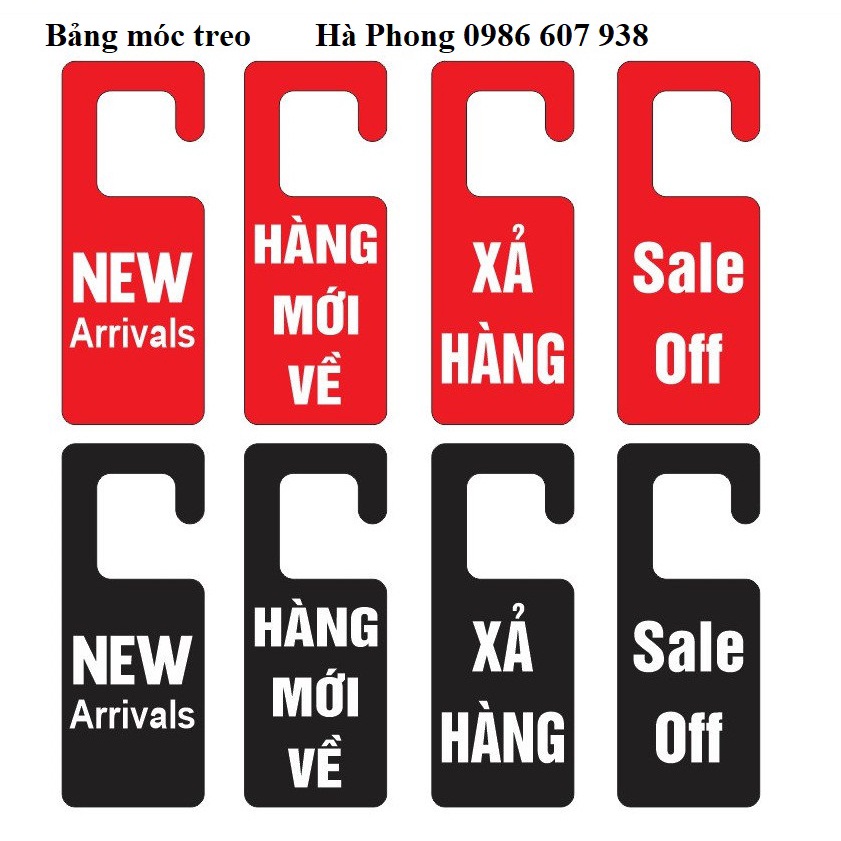 Bảng xả hàng và hàng mới về kích thước 30cm*20cm có dây đay treo bảng, (còn lại các bảng kích thước 15cm*25cm)