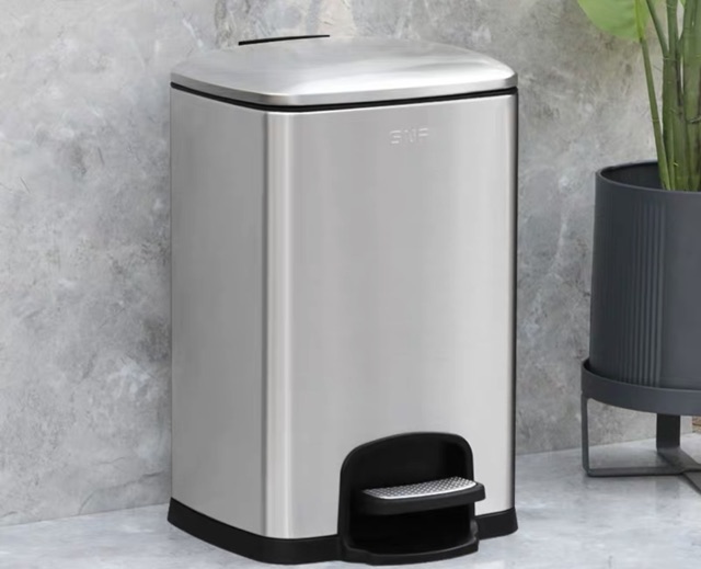 Thùng rác đạp vuông nhỏ sở hữu kiểu dáng vuông vức với màu bạc trang nhã, góp phần tăng thêm vẻ sang trọng, hiện đại cho không gian nhà bạn