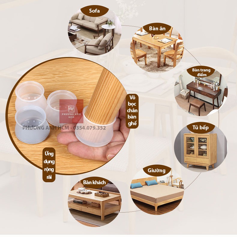 💨💨Shop có ảnh kích thước chi tiết của sản phẩm, quý khách vui lòng tham khảo trước và đặt đúng phân loại phù hợp với nhu cầu của mình❗❗• Có thể bảo vệ cả chân bàn ghế và sàn nhà khỏi trầy xước.