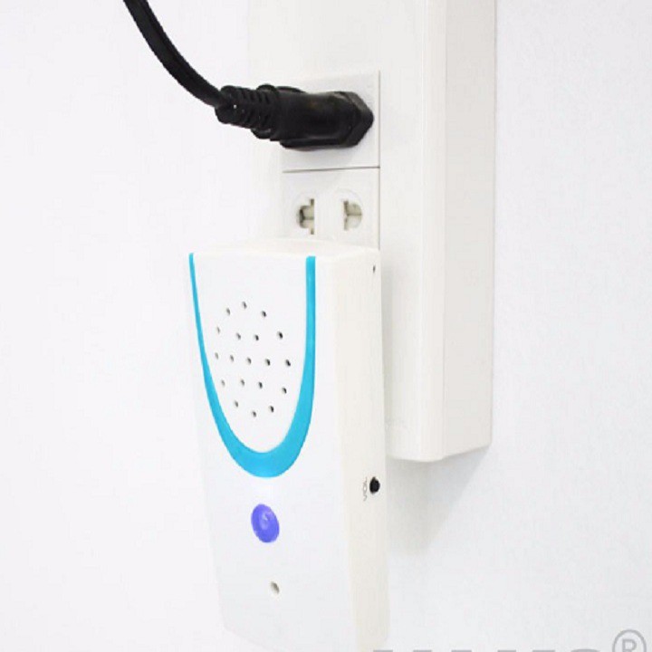 _ Chuông báo gắn trong nhà vào ổ điện 220V-50hz ( chân cắm là chân tròn). Nút tròn xanh phía trước chuông là nút đổi kiểu chuông- có 16 kiểu chuông để bạn lựa chọn.