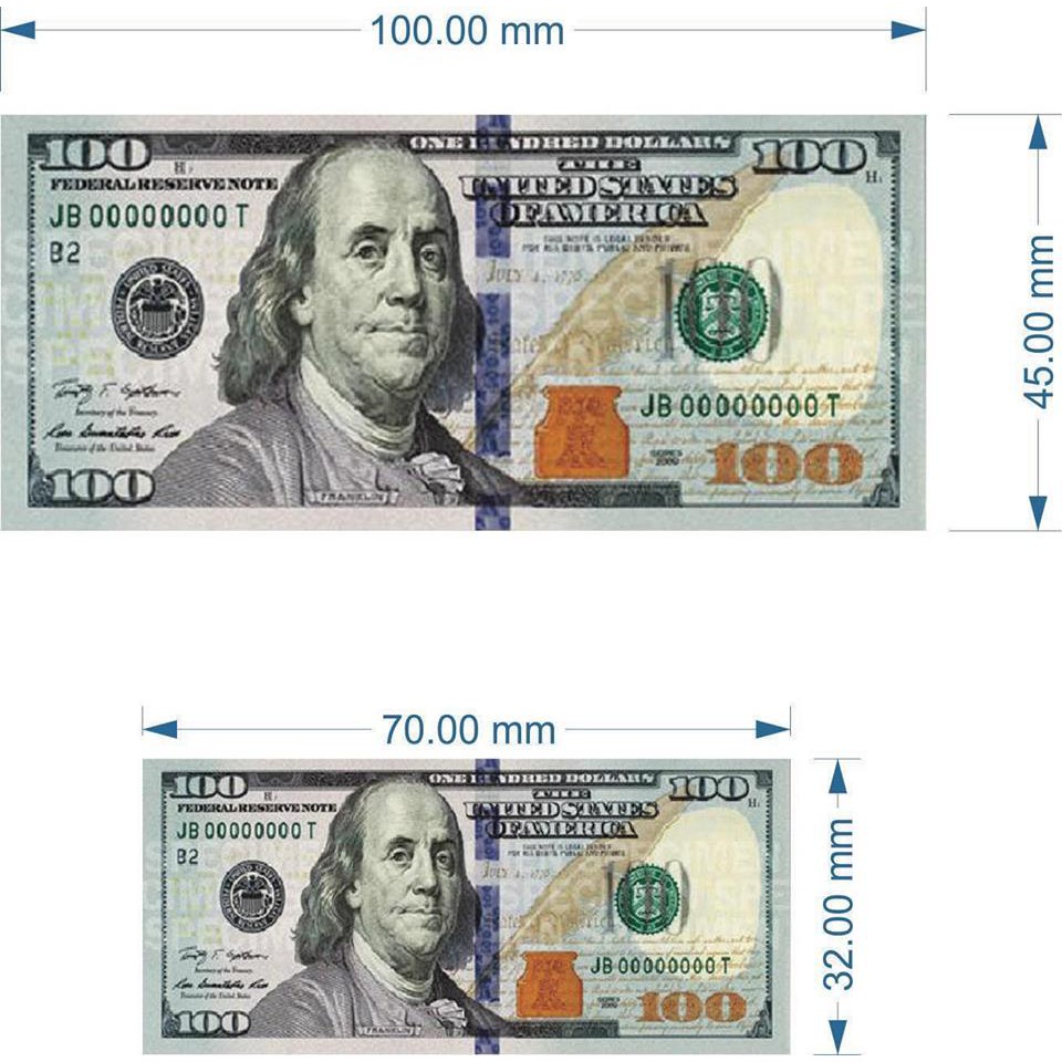 - Kích thước tờ tiền :