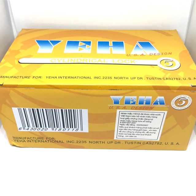 Khoá tay nắm phòng YEHA chính hãng,chốt khoá 60mm thích hợp khoá cửa gỗ ,cửa sắtBộ sản phẩm gồm:1 ổ khoá,1 chốt khoá 60mm lắp cửa gỗ,3 chìa khoá,bộ vít theo kèm sản phẩm