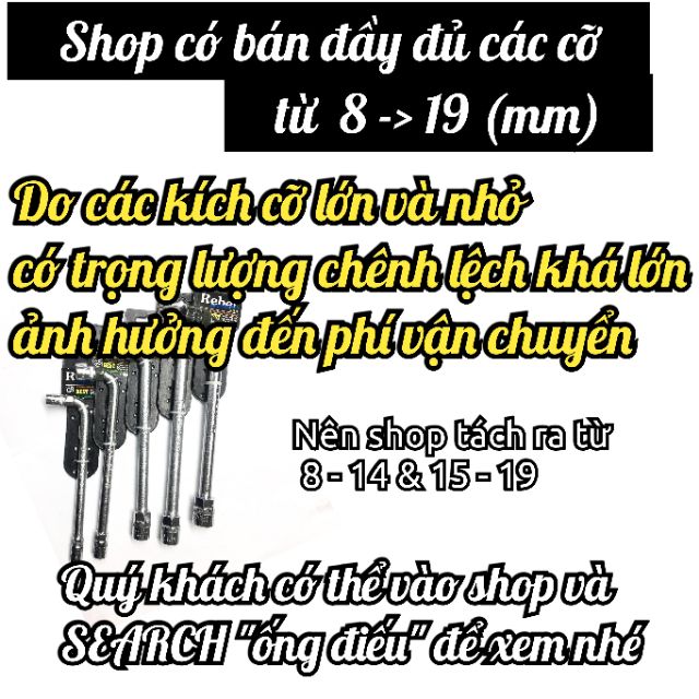 - Kích thước 8, 9, 10, 11, 12, 13, 14, 15, 16, 17, 18, 19mm
