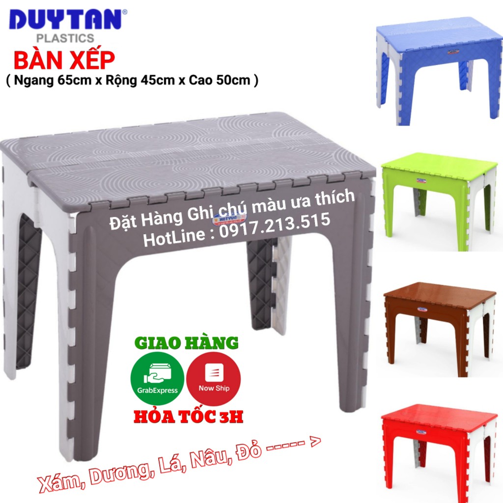 - Bàn Nhựa Xếp Duy Tân (65 x 45 x 50 cm) No.947 dễ sử dụng, dễ vệ sinh, chất liệu nhựa nguyên sinh và chân bàn được làm từ nhựa chính phẩm Duy Tân an toàn cho sức khỏe của bạn và gia đình.