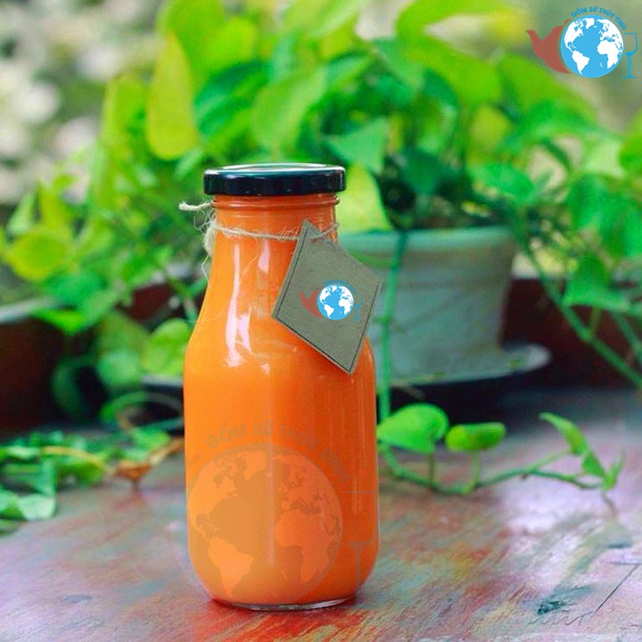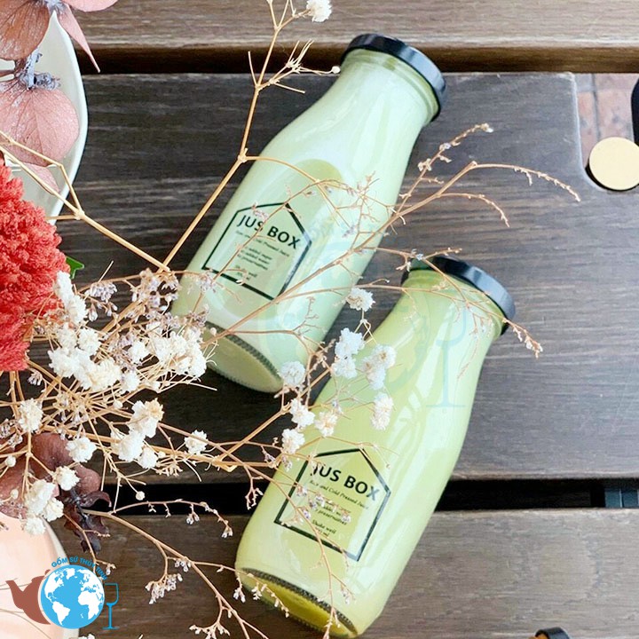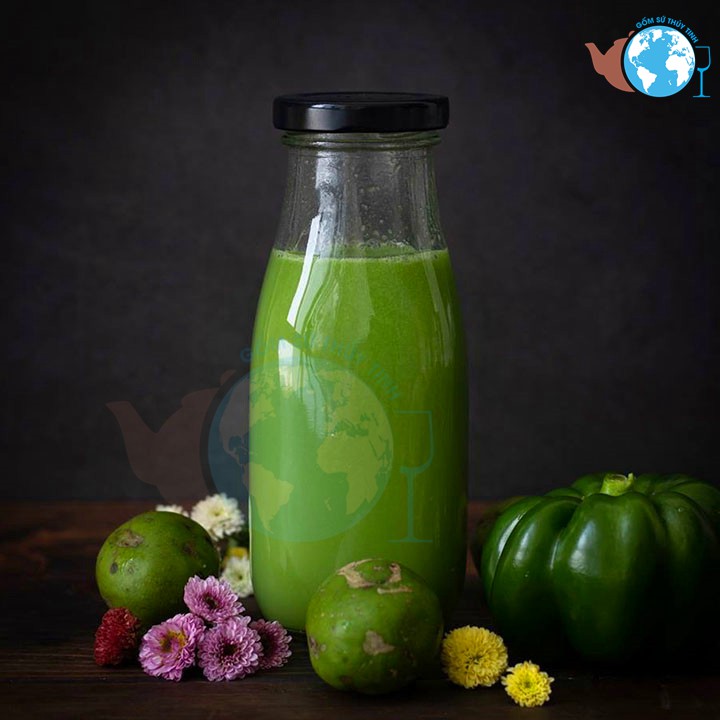 Chai thủy tinh đựng nước trái cây,detox,sữa nắp thiết đen 300ML