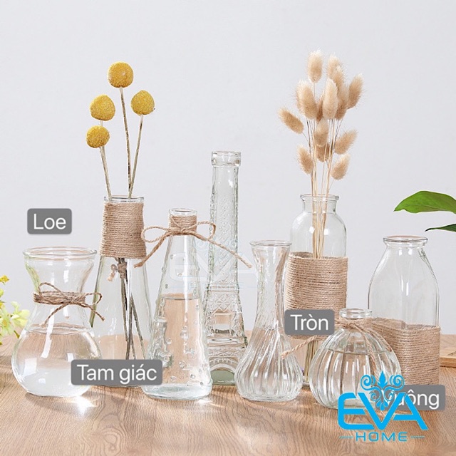 - Bình bình thủy tinh với dáng nhỏ thích hợp trông cây thủy sinh bát tiêng v.v... hoặc cắm các loại bông 1 cành trong nhà hoặc văn phòng làm việc của bạn.