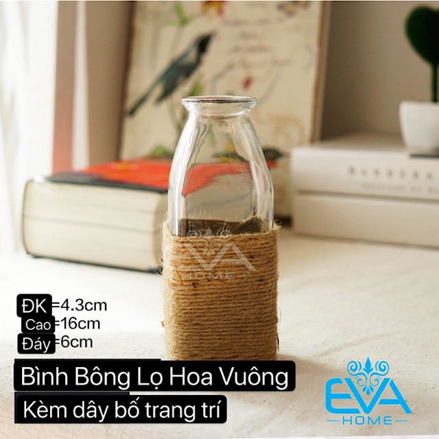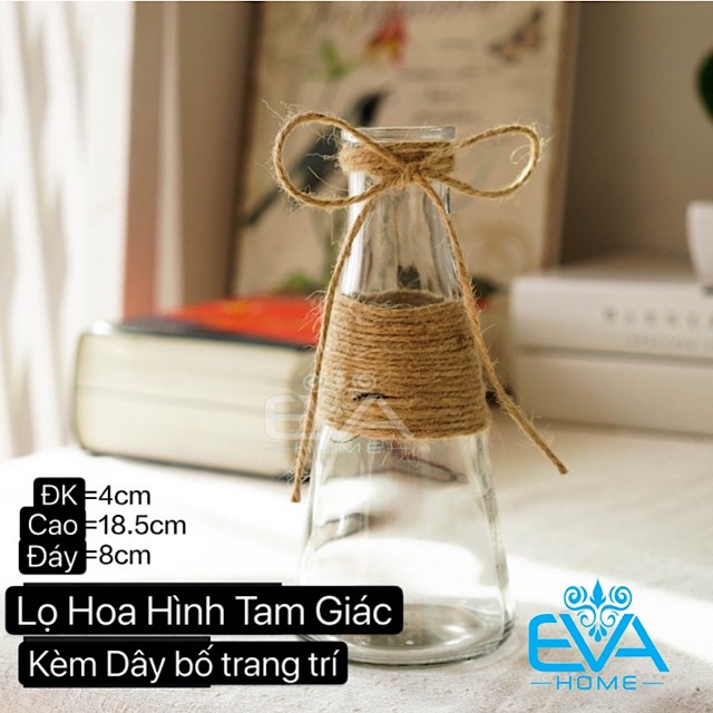 Giới thiệu Combo 3 Bình Bông Lọ Hoa Thủy Tinh Vuông Loe Tam Giác Tặng Kèm Dây Bố Trang Trí