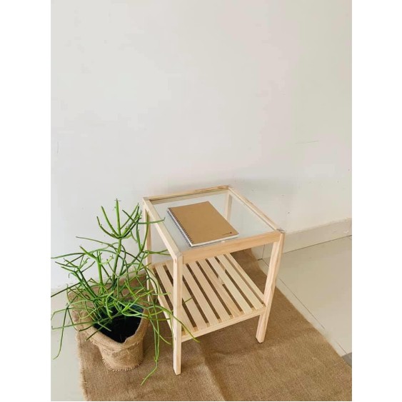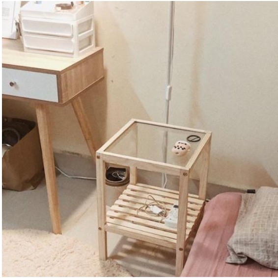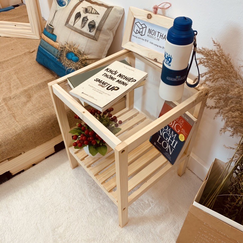 Giới thiệu Kệ Đầu Giường Gỗ Thông Tự Nhiên, mặt kính tôi cường lực An toàn tuyệt đối