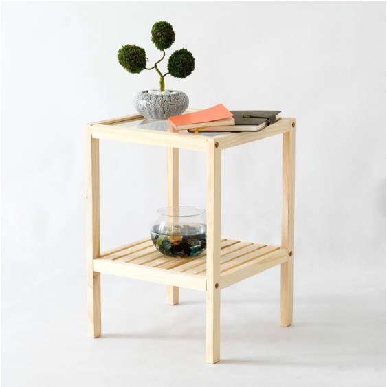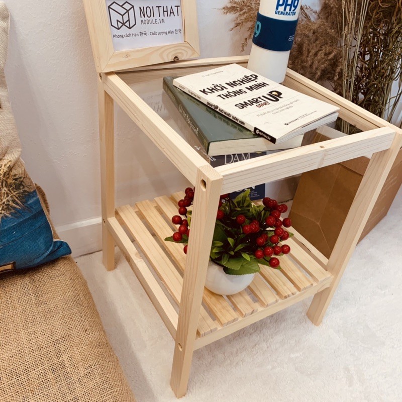 TÊN SẢN PHẨM:Kệ Đầu Giường Gỗ Thông Tự Nhiên - Kệ Kính 2 Tầng