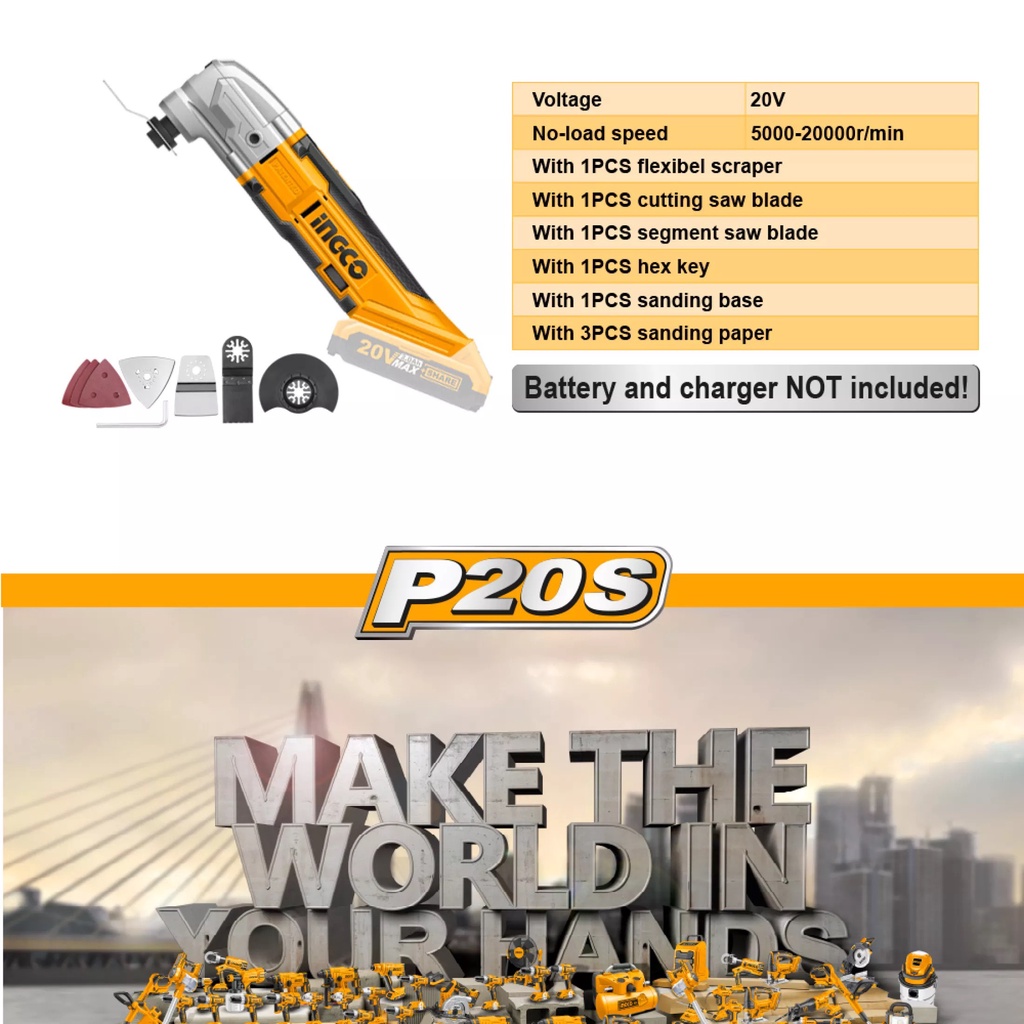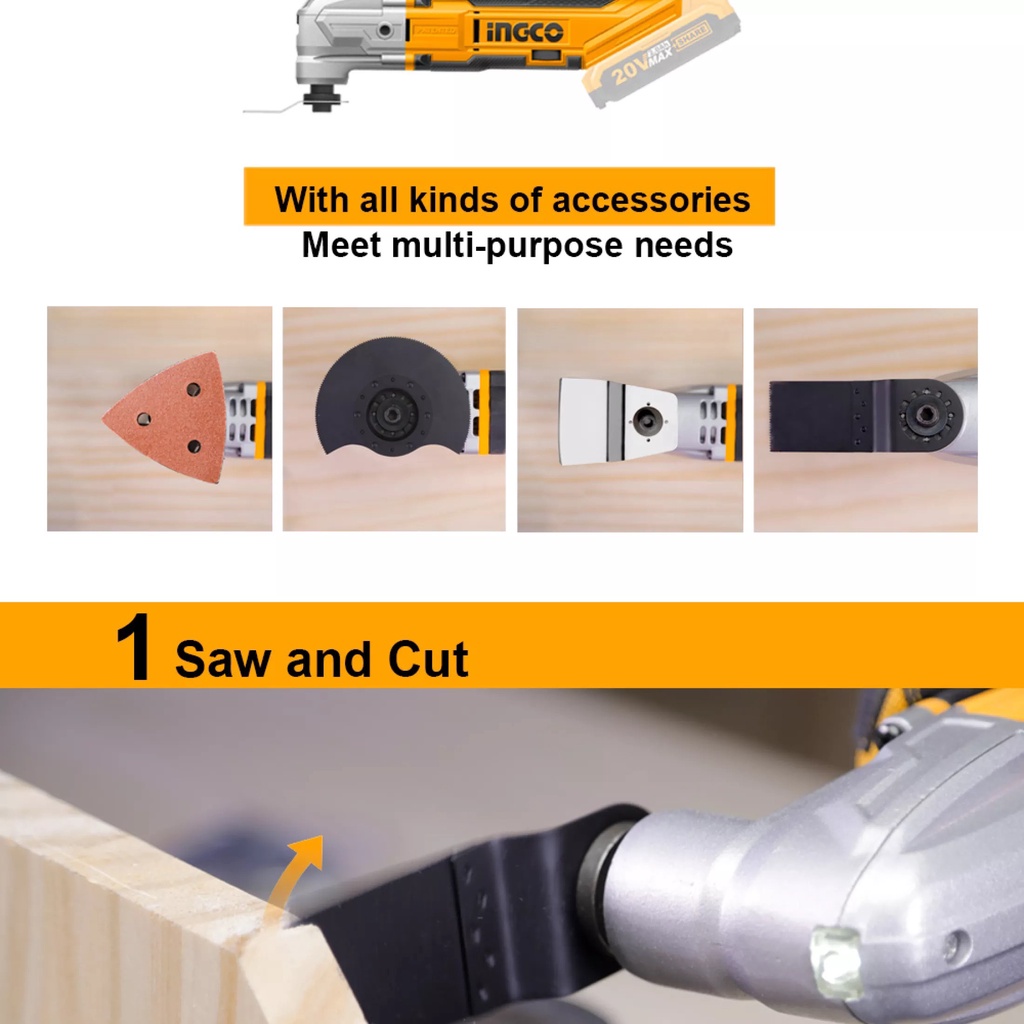 Nhà cửa & Đời sống > Dụng cụ & Thiết bị tiện ích > Dụng cụ > Cưa, máy cắt & máy mài || Máy cắt rung đa năng dùng pin 20V Ingco CMLI2001 ( không kèm pin và sạc )Còn hàng