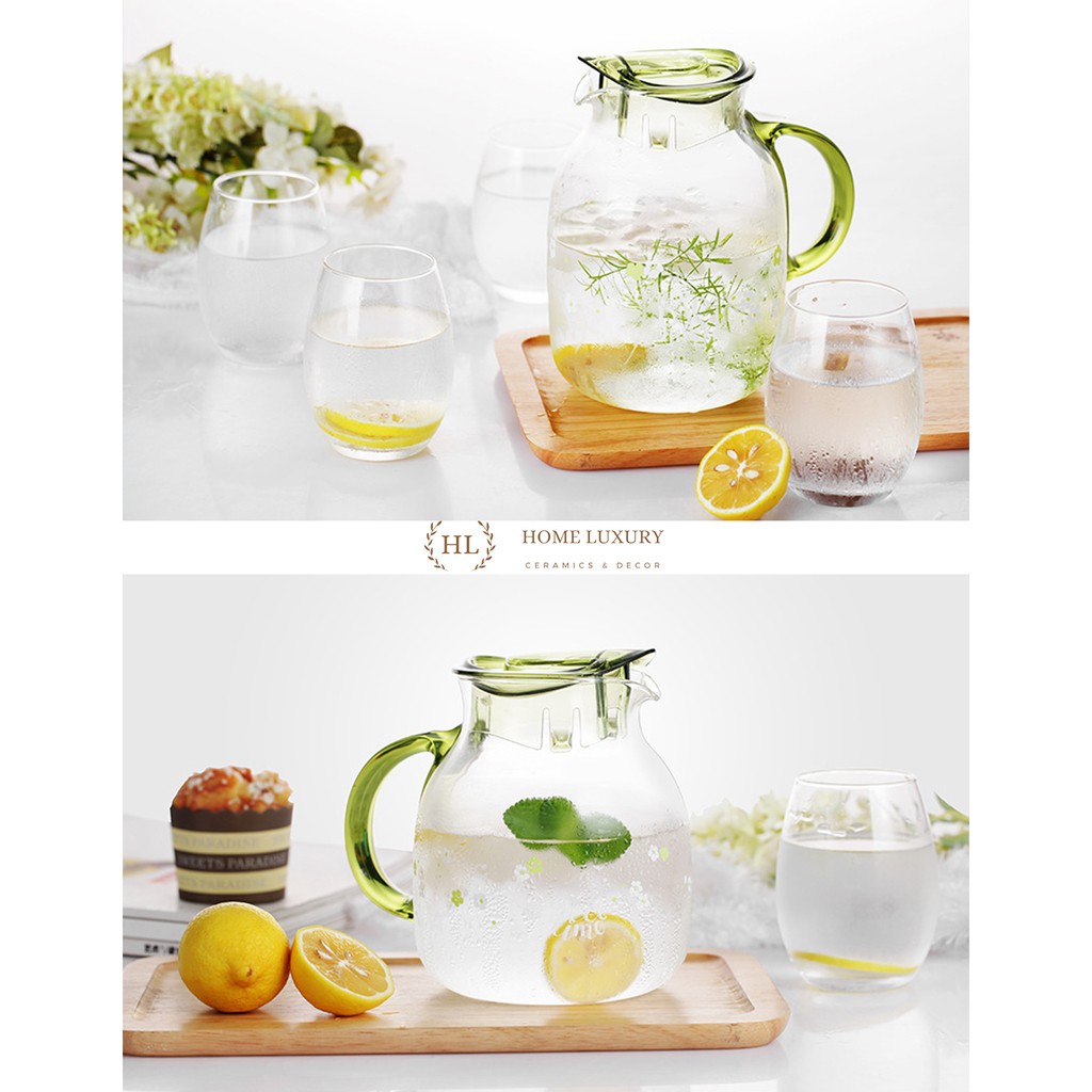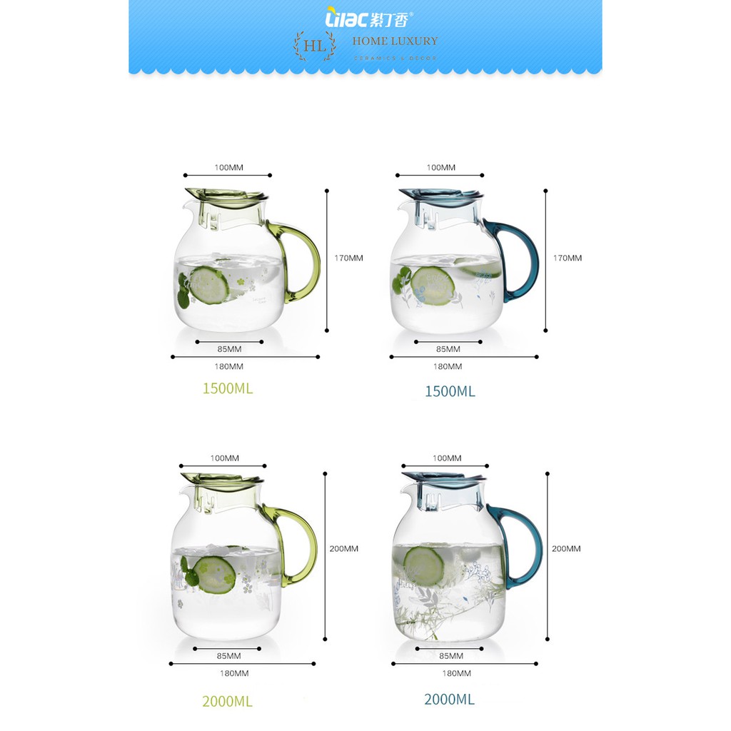Giới thiệu Bình đựng nước thuỷ tinh LiLac 1.5 - 2 Lít - Chịu nhiệt - Hoa Văn cao cấp