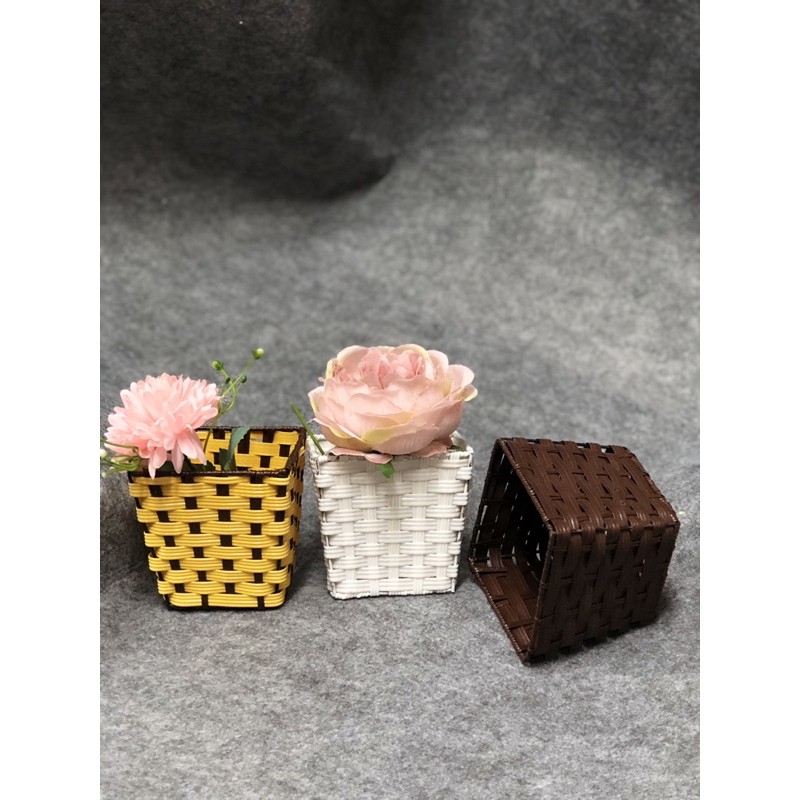 giỏ cắm hoa khung sắt nan nhựa giả mây 10*10cm