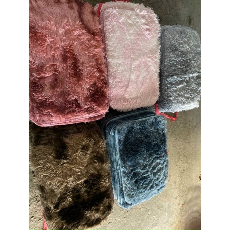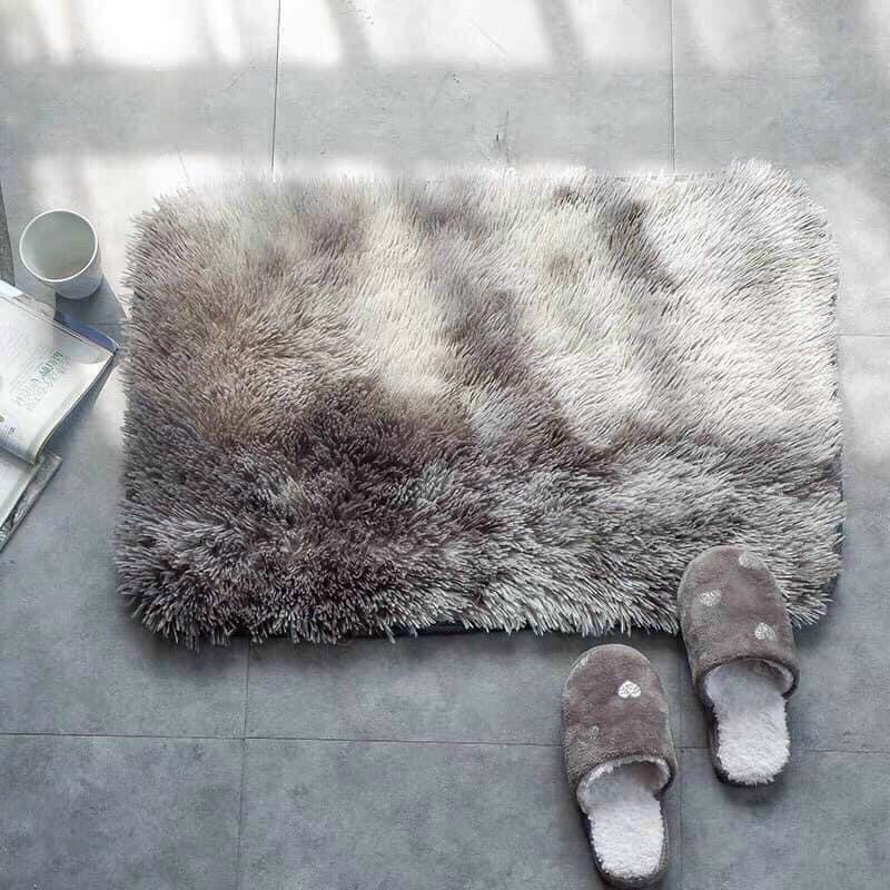 Thảm lông loang kích thước 40x60cm có gai chống trượt, vừa trang trí, chùi chân, hoặc làm nền chụp ảnh đa năng. Thảm lau khô, độ thấm nước ít.- Thảm 2 lớp: mặt trên lông mềm mại, mặt dưới lót chống trượt