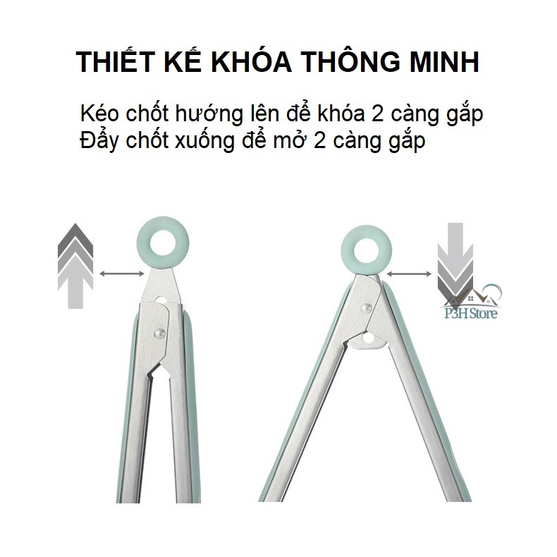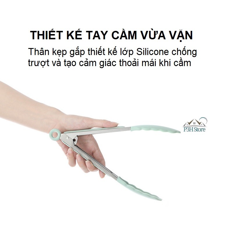 Tay cầm gắp có lớp silicone chống nóng và chống trượt