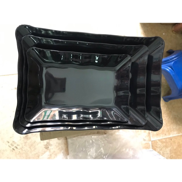 Nhà cửa & Đời sống > Bộ đồ bàn ăn > Dĩa || Đĩa nhựa phíp hình chữ nhật màu đen và nâuCòn hàng