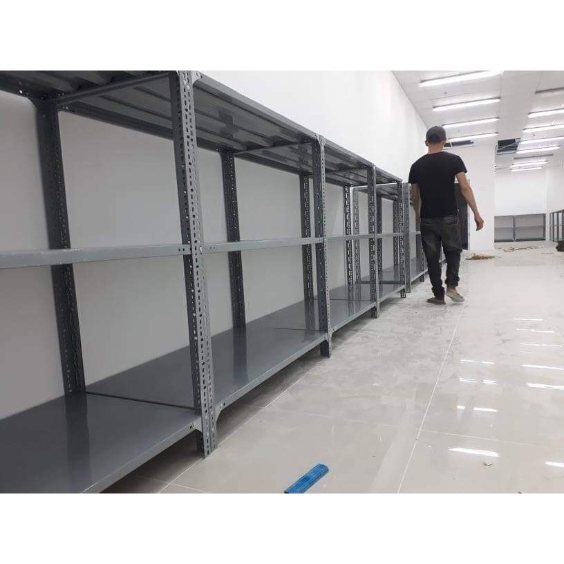 Kệ sắt v lỗ đa năng Giá kệ sắt V lỗ đa năng dùng để lắp ghép thành bộ kệ để hàng trong kho, siêu thị, để đồ trong nhà, kệ hồ sơ chứng từ. Giá kệ sắt đã được xử lý bề mặt chống han gỉ, trày xước bằng sơn tĩnh điện cao cấp 3 lớp công nghệ Nhật Bản độ bền cao và chống ẩm mốc, chống oxi hoá. Được tôi luyện qua qua mô hình công nghiệp nên rất cứng và rắn chắc chịu được lực uốn kéo, xoắn lớn hơn bình thường có cấu tạo vô cùng đơn giản, gồm các thanh sắt v lỗ, sử dụng ốc vít, thao tác tháo lắp nhanh chóng, dễ dàng.