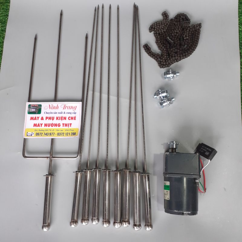 Lưu ý : Mô tơ 6w có thể làm máy 10 tới 12 xiên và tải được 3 con gà vịt