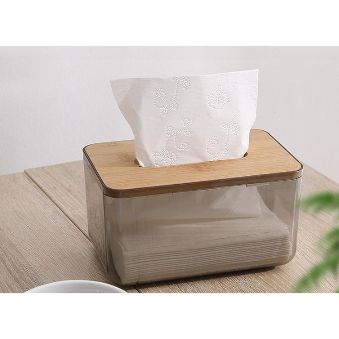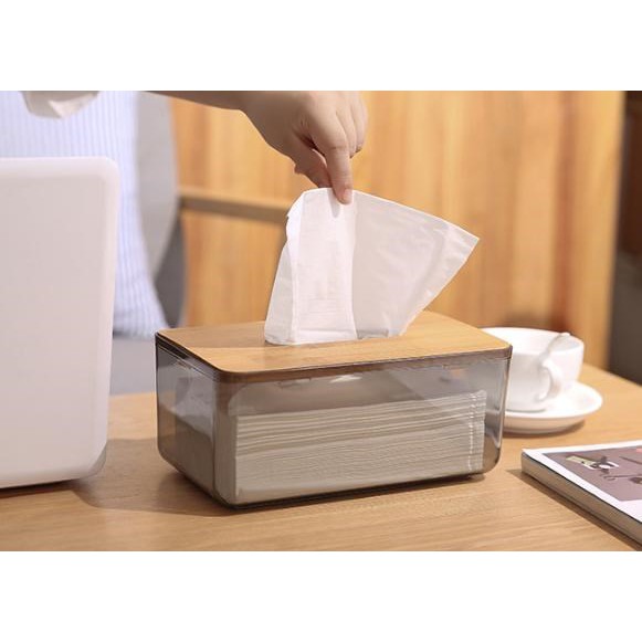 Hộp đựng giấy ăn trong mờ nắp gỗ