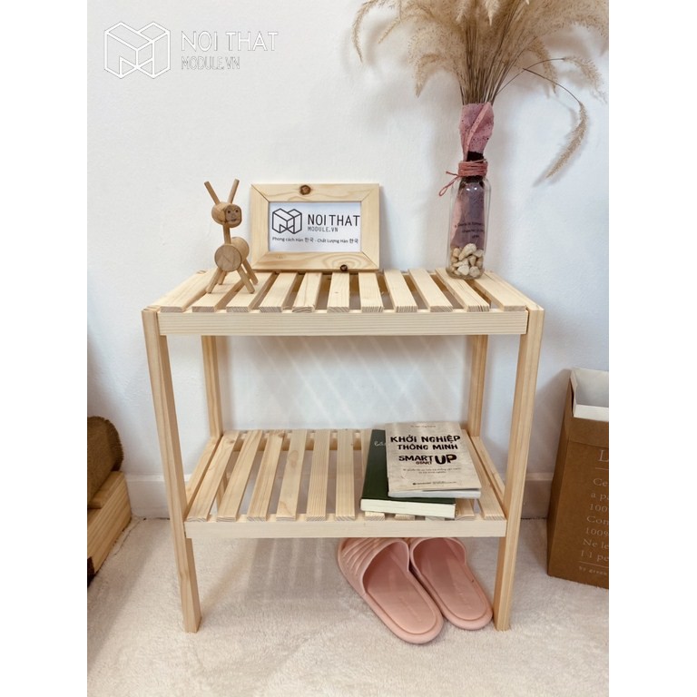 Kệ Giày Dép 2 Tầng dài 50cm - Gỗ thông Tự Nhiên Nhập Khẩu