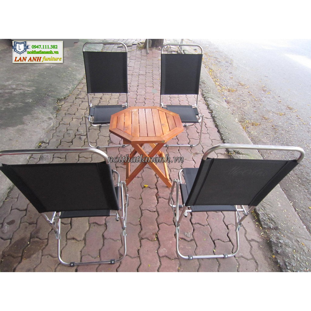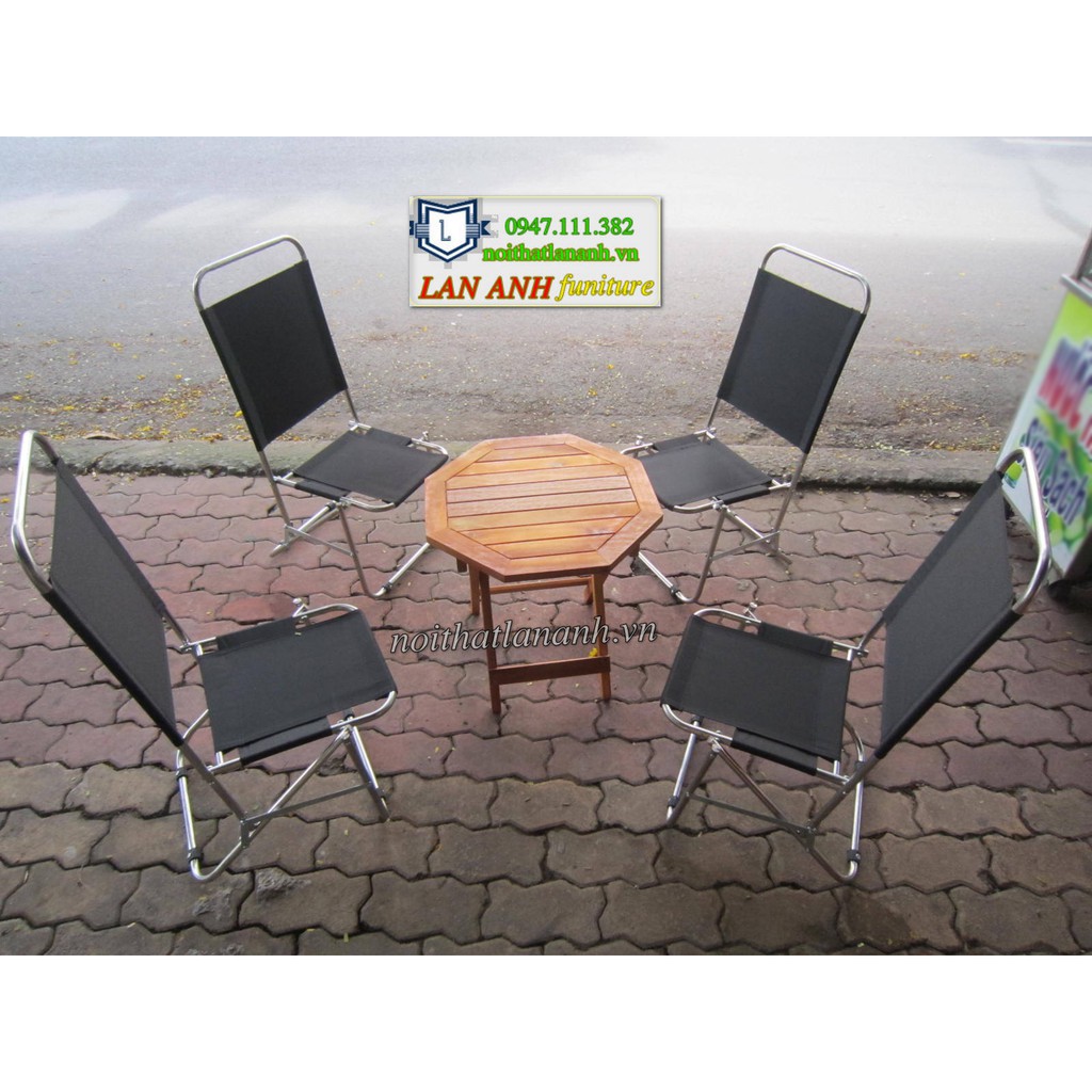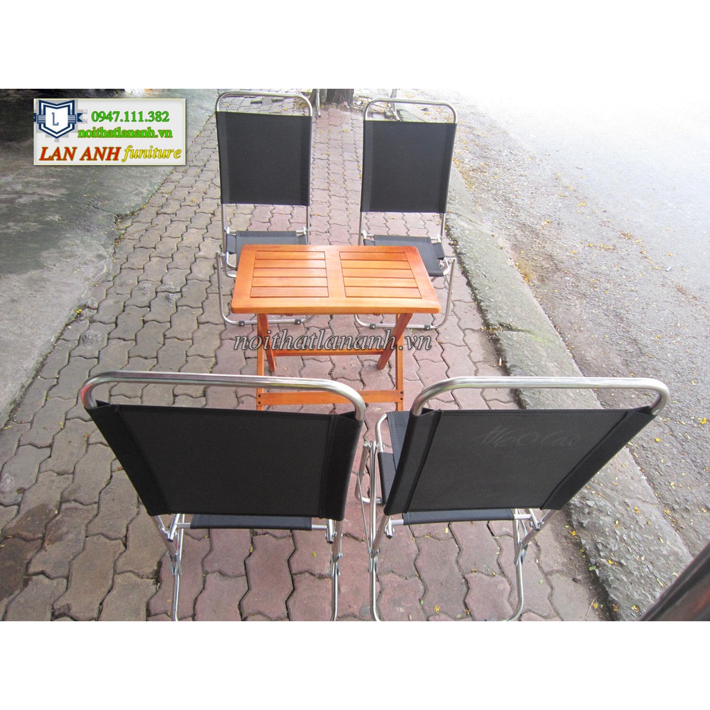 Trọn bộ bàn ghế xếp ( 4 ghế lưng cao vải bố inox + 1 bàn )