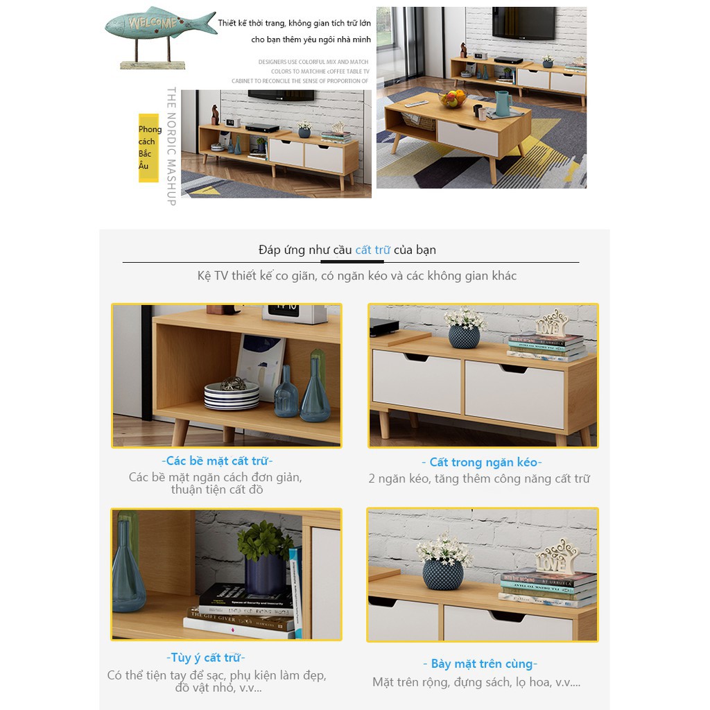 - Đa công năng: Để đầu thu, Wifi, loa, thiết bị điện tử, đồ trang trí thỏa mái. Lắp được cả phòng khách và phòng ngủ.