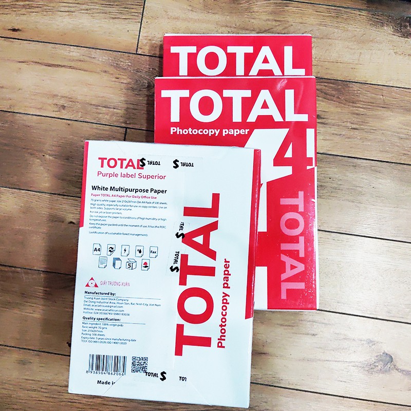 Văn Phòng Phẩm > Sổ & Giấy Các Loại > Giấy In || Giấy A4 TOTAL định lượng 70gsm 500 tờCòn hàng