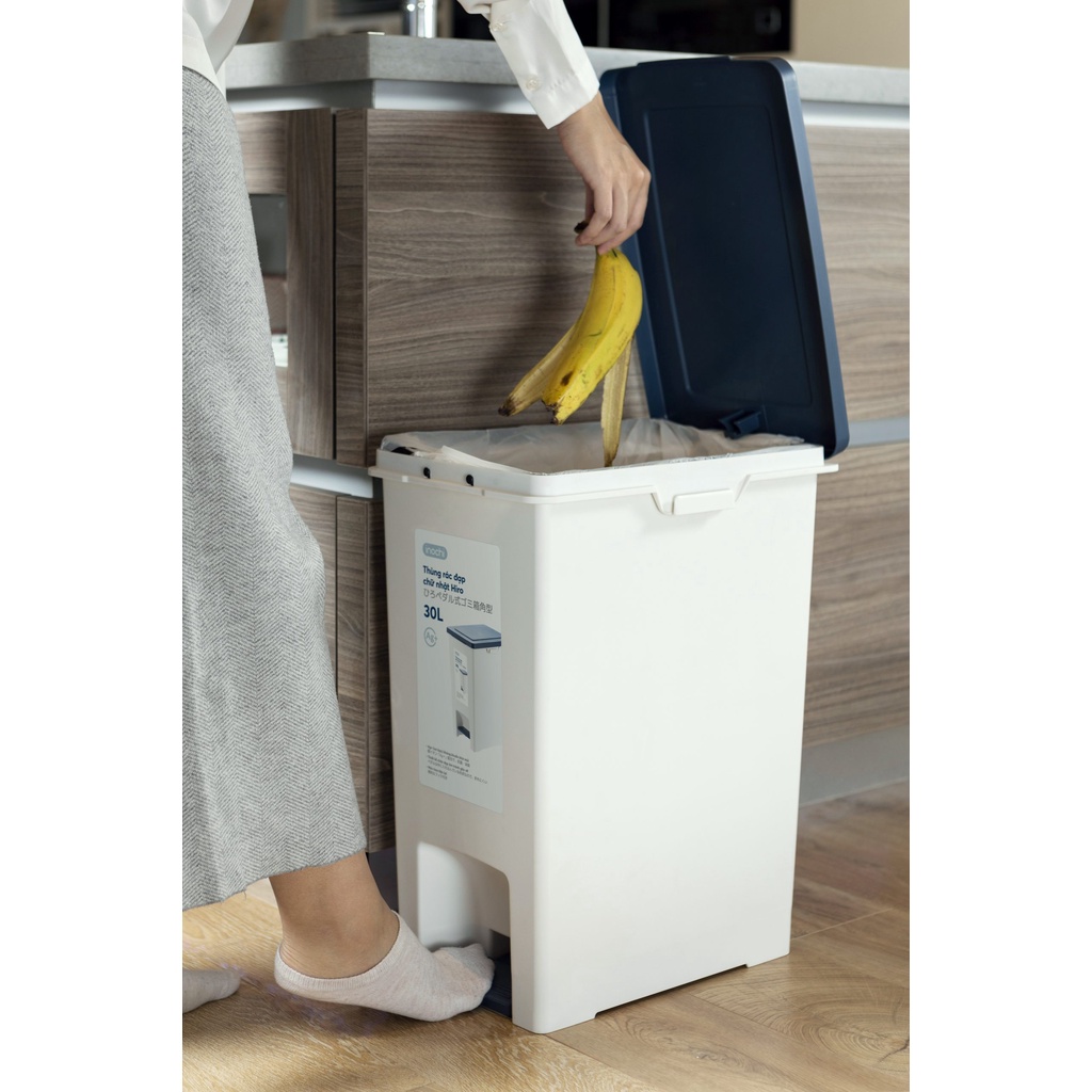 Nhà cửa & Đời sống > Dụng cụ chăm sóc nhà cửa > Thùng rác || Thùng rác đạp chữ nhật Hiro 30L Inochi, chất liệu nhựa PP kháng khuẩnCòn hàng