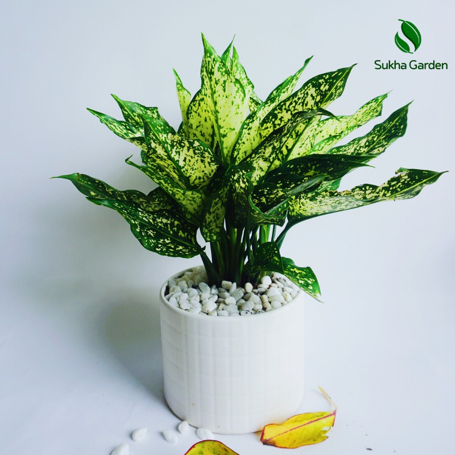 Nhà cửa & Đời sống > Làm vườn > Cây cảnh || Cây Ngọc Ngân để bàn kèm Chậu gốm tráng menCòn hàng