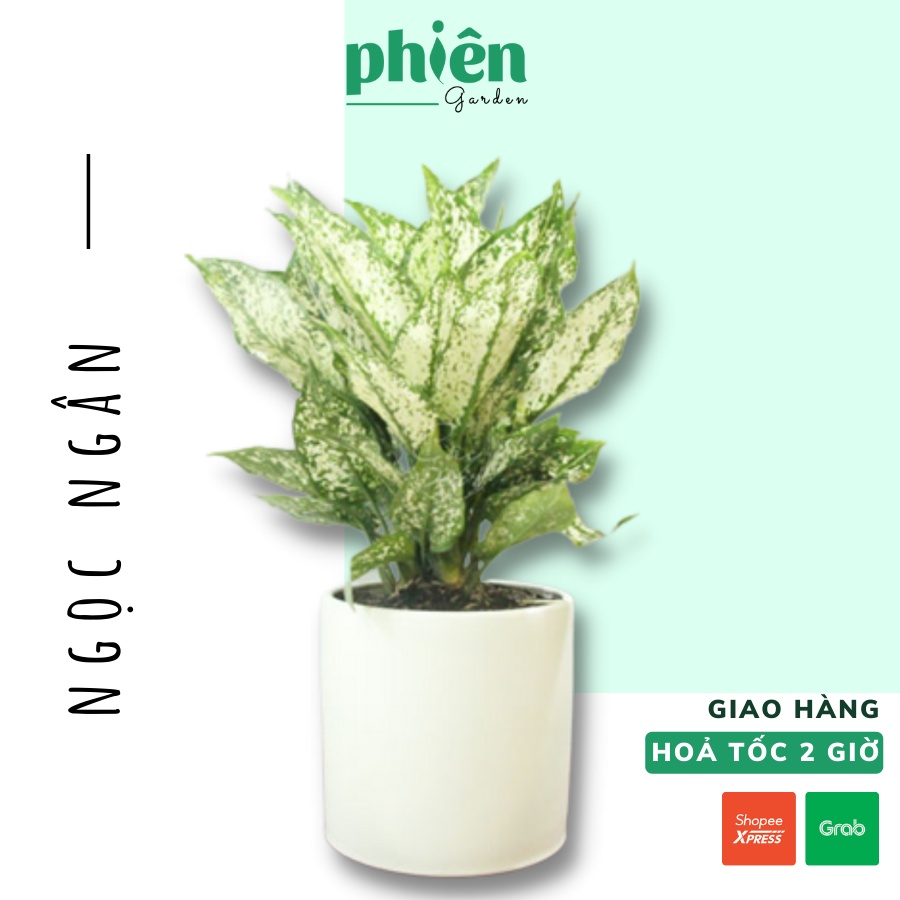 Mô tả: Cây Ngọc Ngân có lá khá nổi bật, vì tính tương phản giữa màu xanh thẫm của lá và màu trắng phần giữa lá, nó khiến người xem bị thu hút và thích thú ngay từ cái nhìn đầu tiên.