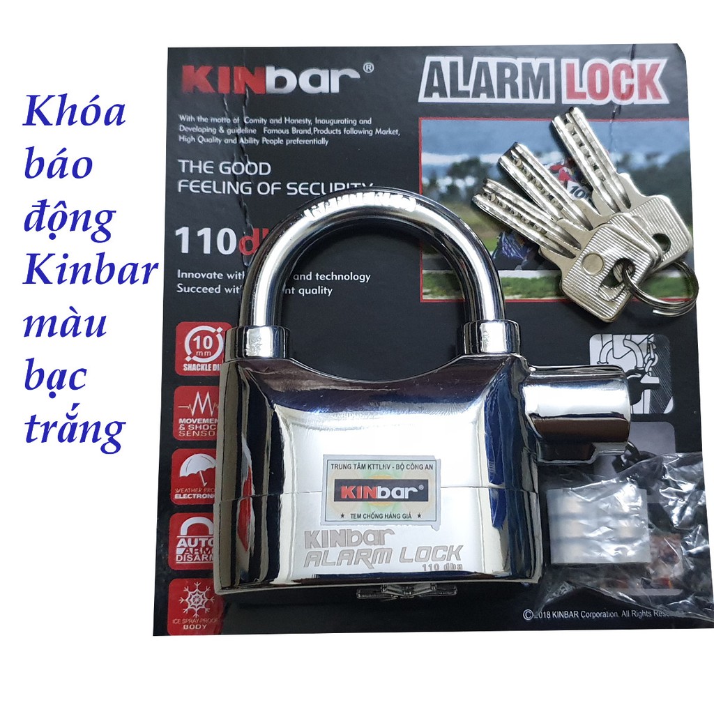- Ổ khóa báo động chống trộm Kinbar - màu bạc trắng - 3 chìa kiểu chìa muỗng