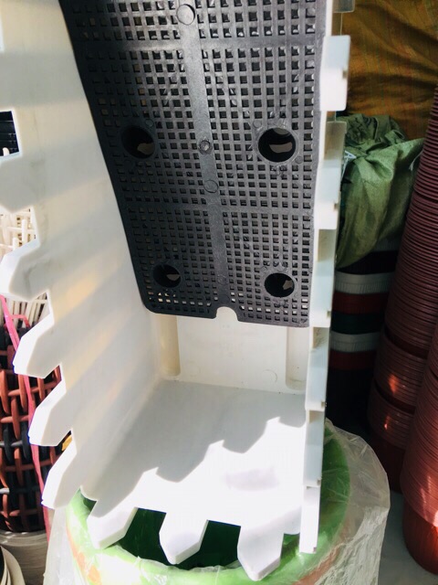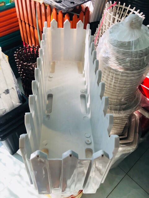 Chất liệu: - Nhựa Đúc Composite loại 1, hình dáng HÀNG RÀO cao cấp loại 1 (Rất Dày và Nặng - Chống Bể Vỡ)- Khung Móc Sắt Đặc Sơn Bọc Nhựa Tỉnh điện (Chống trầy xước, tróc, rỉ sét) 3 màu : trắng - xanh ngọc - đen