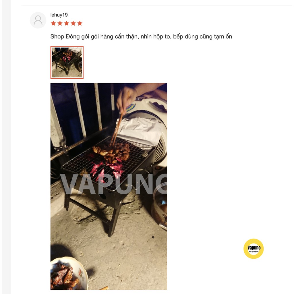 * Bếp nướng than hoa ngoài trời cao cấp VAPUNO với khả năng không gây khói ám vào thức ăn, giữ được nguyên hương vị thơm ngon, độ ngọt của thực phẩm. Tiện lợi khi sản phẩm khá gọn bạn mang theo bất cứ đâu mà không hề chiếm nhiều diện tích và khó khăn khi chuyên chở.