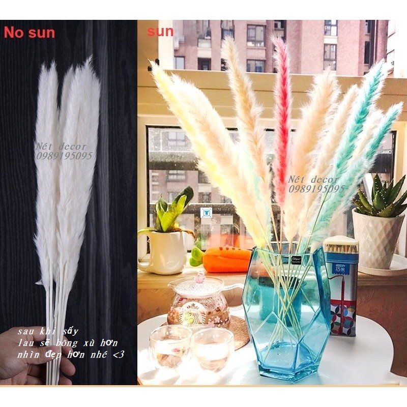 ✪ cành lau khi lấy ra khỏi bọc cần thời gian hoặc sấy nhẹ bằng máy sấy để cành được bung xòe lên nhé .