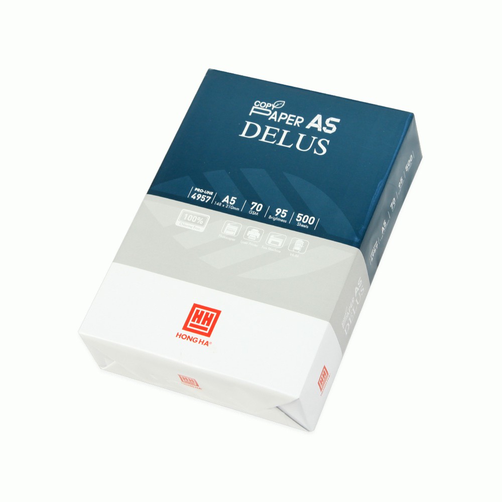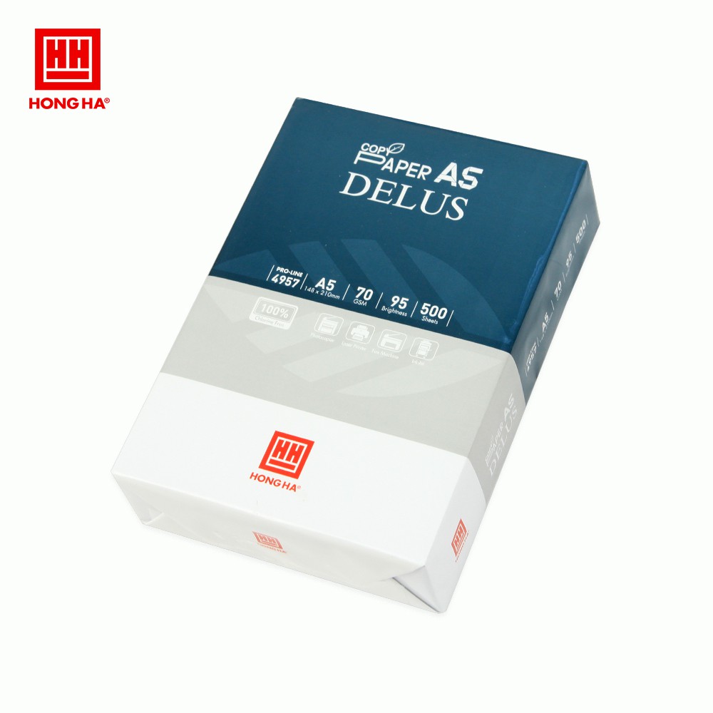 Giấy in A5 Delus Hồng Hà 70gsm 4957 là sản phẩm giấy xuất xứ từ Indonesia, được sản xuất với công nghệ tiên tiến, hiện đại, đóng gói bằng dây chuyền hoàn toàn tự động.TÍNH NĂNG SẢN PHẨM GIẤY IN A5 70GMS 4957: