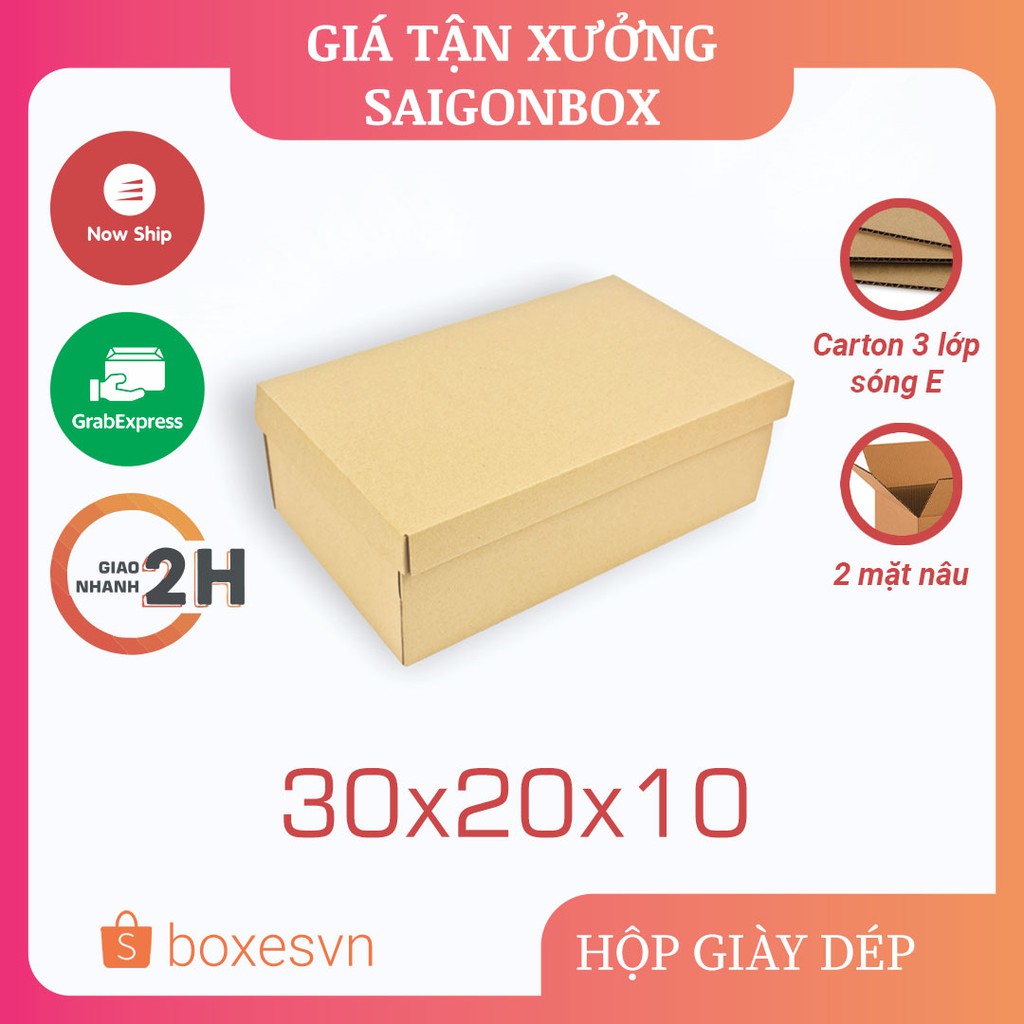 TIÊU CHUẨN SẢN PHẨM: Hộp giấy carton đựng giày dép size 30x20x10 cm.