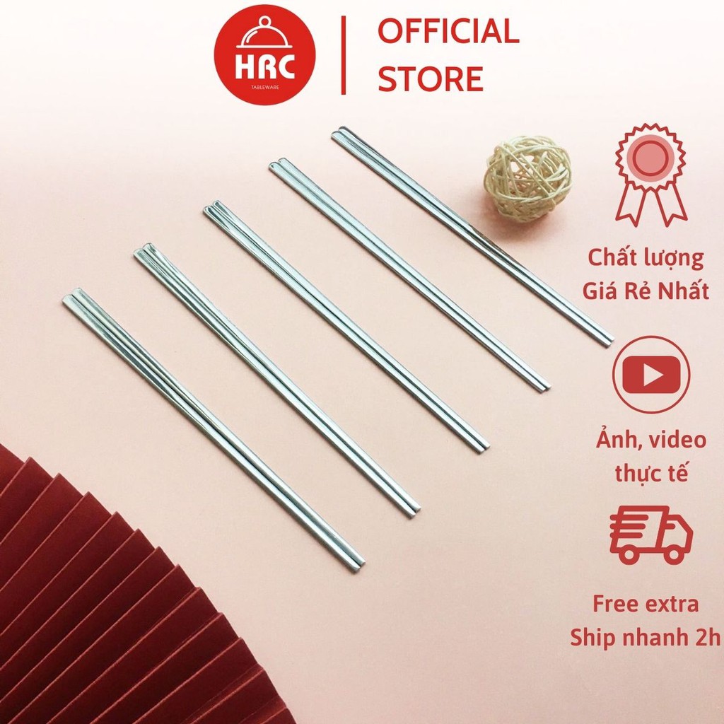 [Mã LIFEHLSALE2 giảm 10% đơn 0Đ] Đũa inox cao cấp ăn cơm hàng bóng đẹp Đũa dẹt thiết kế kiểu Hàn Quốc (1 đôi)