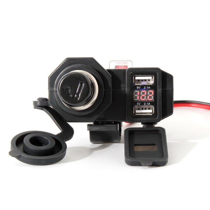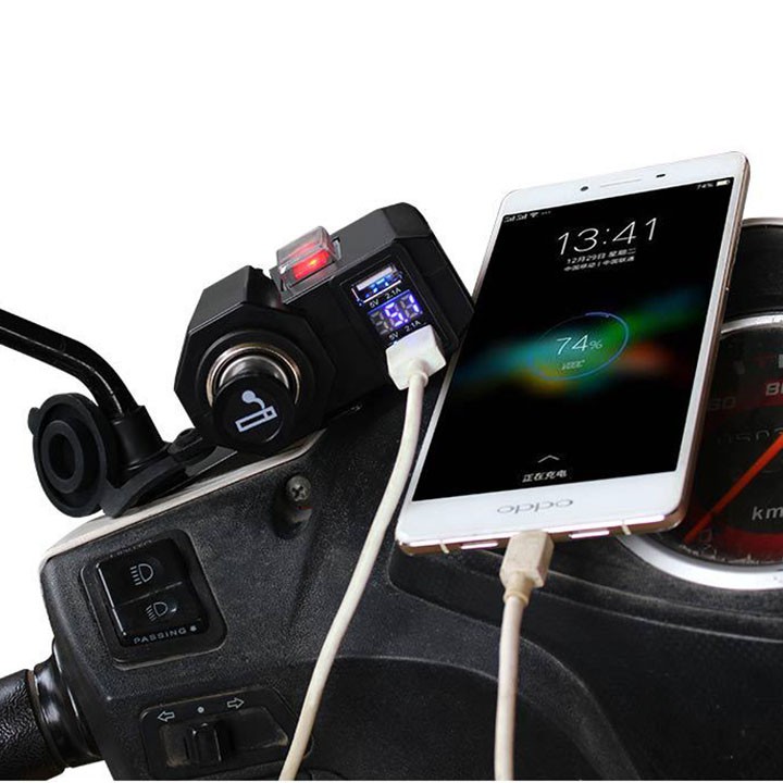 Sạc điện thoại gắn xe máy đa năng 3 in 1- Sản phẩm gồm các tiện ích :
