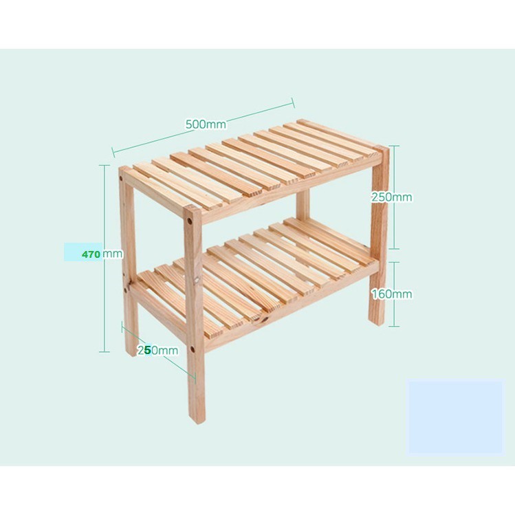 Kệ Giày Gỗ 2 Tầng - Chất Liệu Gỗ Thông - Size 50cm