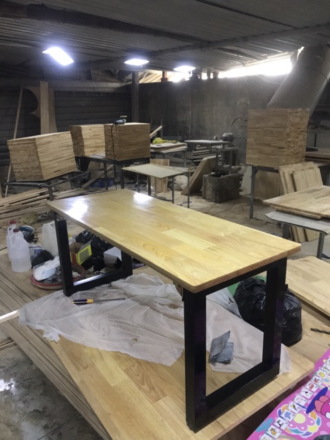 - Mô tả sản phẩm: Bàn gỗ làm từ gỗ cao su ghép thanh,loại AC phủ keo 2 mặt rất đẹp,mặt bàn dày 18mm đảm bảo độ chắc chắn.Gỗ ghép đã được xử lý sấy khô, chông mối mọt trong thời gian sử dụng lâu dài.